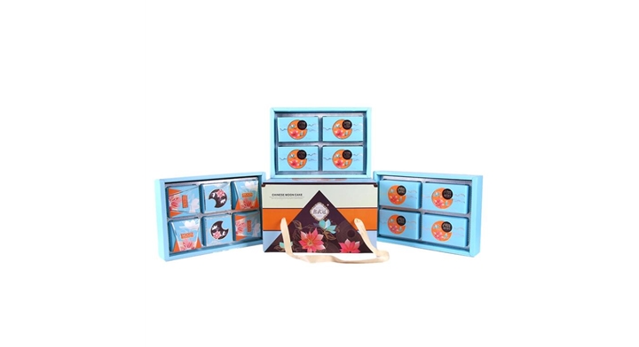 上拉蓋藍(lán)色加金卡配6個(gè)裝月餅包裝